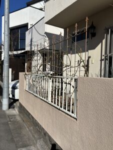 ピエールドゥロンサール、サマースノー他4本のつるバラの冬剪定に伺いました。