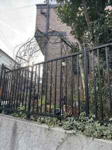 北側玄関のつるバラ、木立ちバラ計7本の冬剪定作業に伺いました。