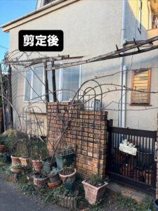 開花状況から、枝が弱いバラに、これからお手当をしていく作業のご依頼をいただきました。