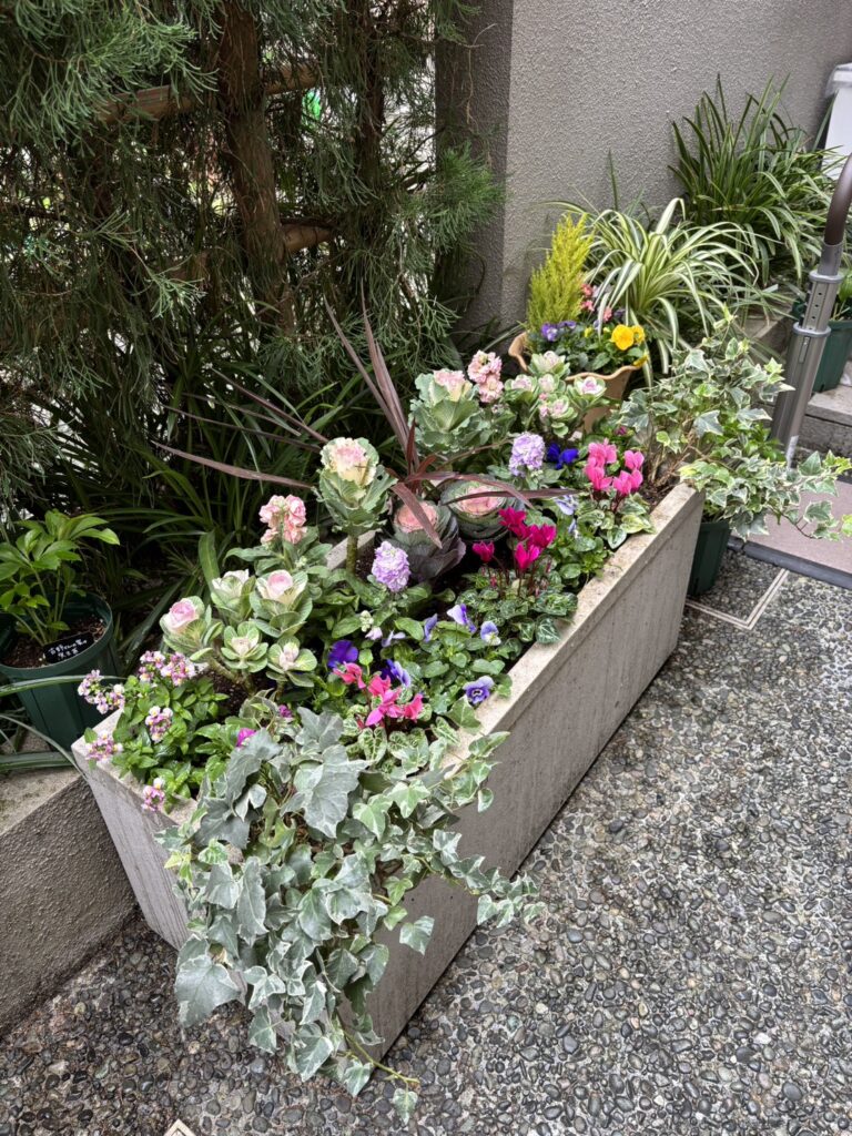 [作業報告]花植え:ハンギングバスケット設置 大型プランター植え替え 渋谷区