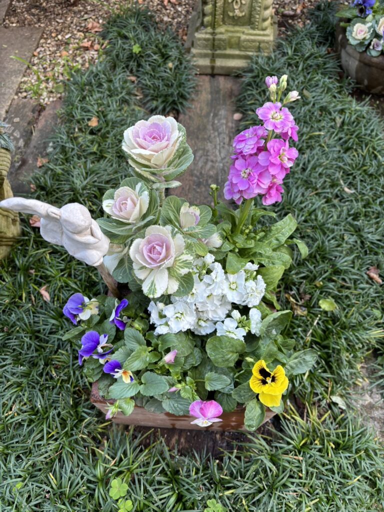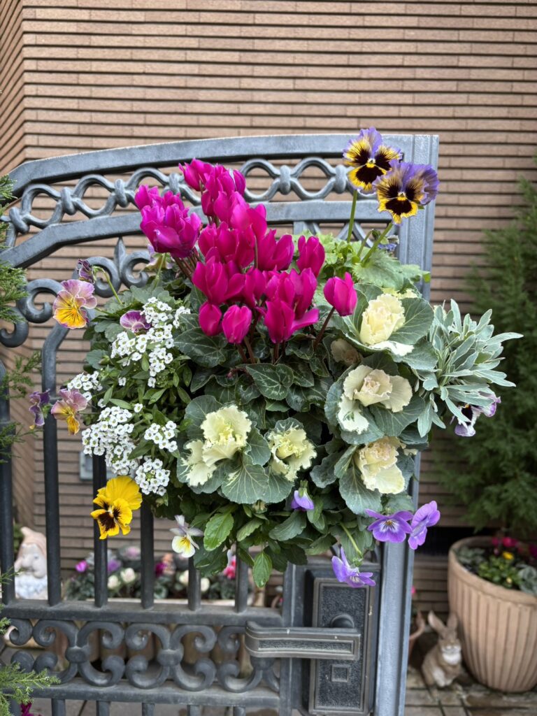 パンジービオラ、ガーデンシクラメン、ハボタン、ストック、アネモネ、スウィートアリッサム、白妙菊など、240株ほどご用意しました。