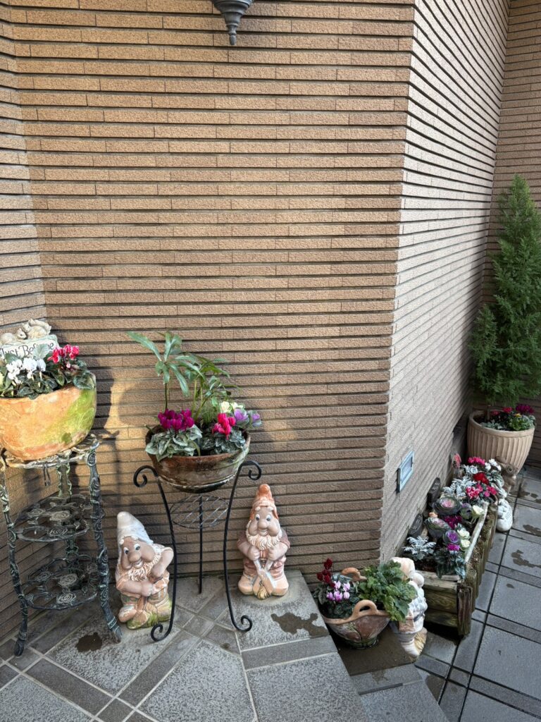 玄関側は日照が弱いので、ガーデンシクラメン中心です。