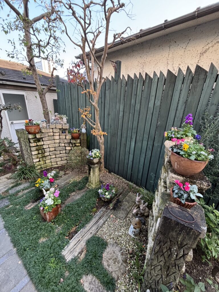 お庭側、こちらは陽当りが良いので、ストックやアネモネ、スウィートアリッサムも使えます。
