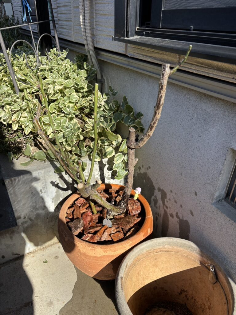 木立ちのバラと思い込んでいましたが、自宅で調べたらつるバラだったみたいです。(恐らくお客様もつるバラとは知らなかったと思います。)