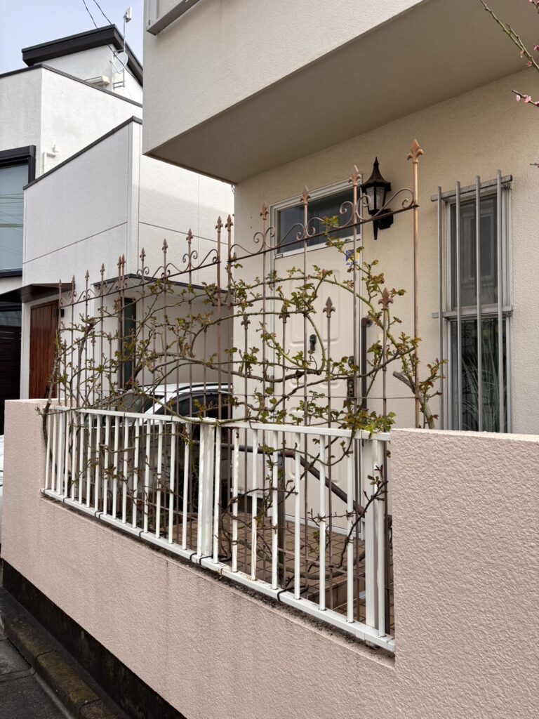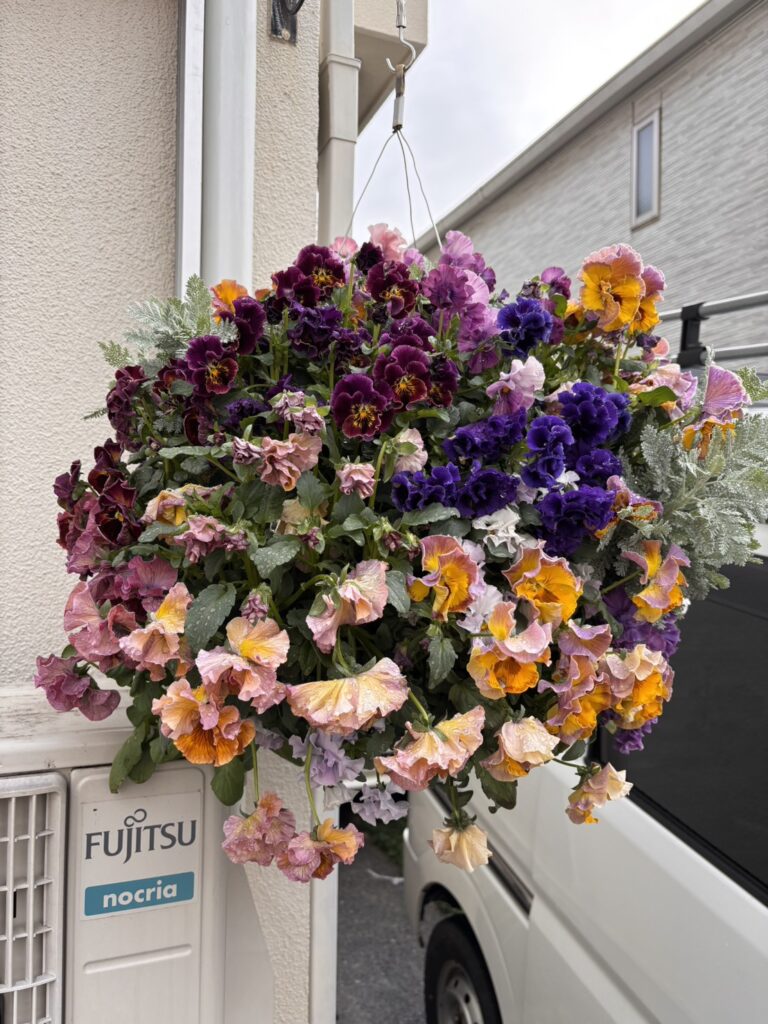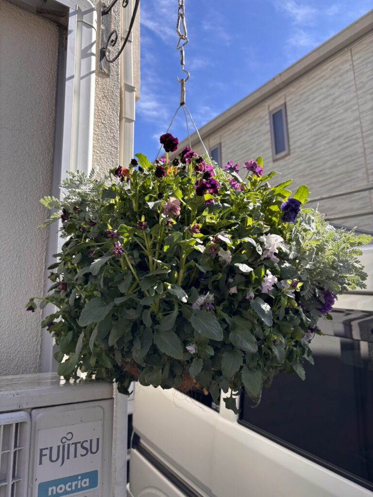 ポスト下花壇のハンギングバスケットも切り戻しました。
