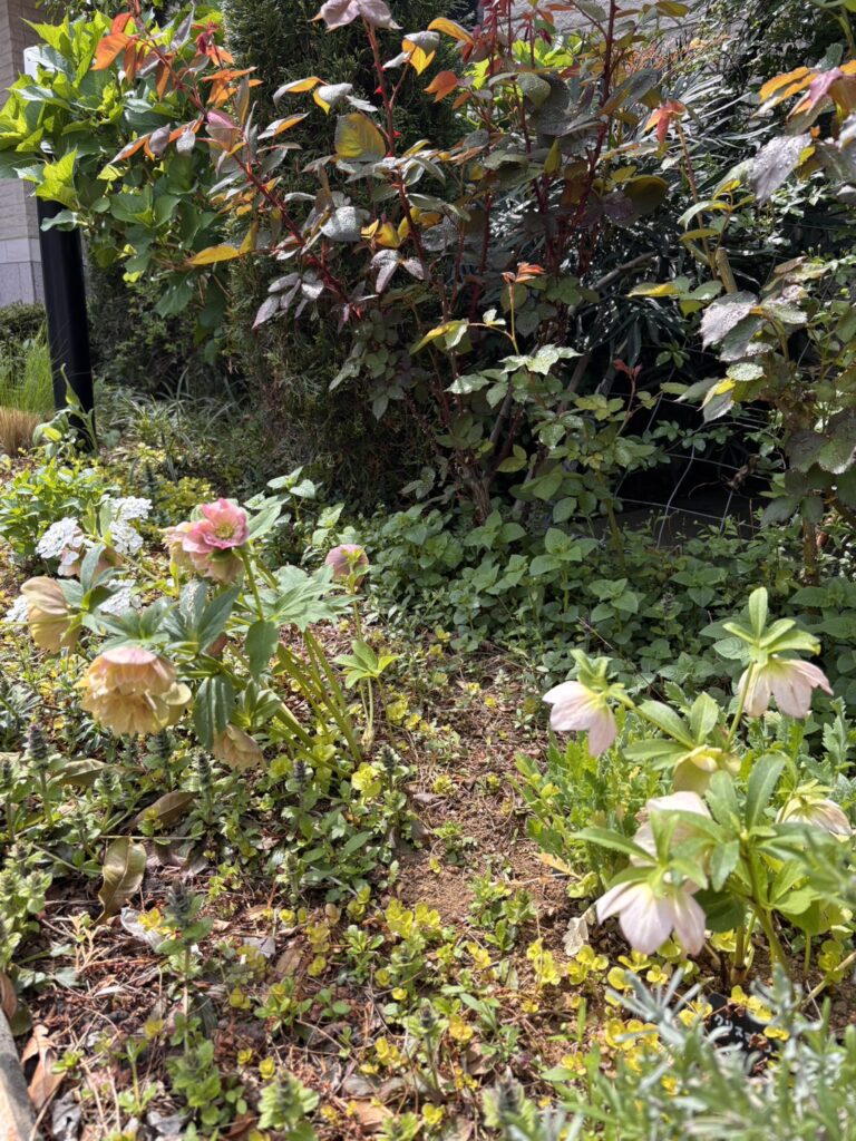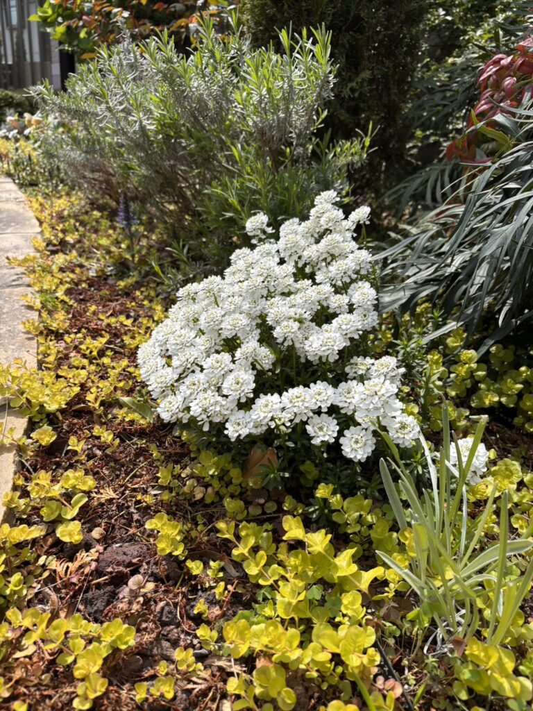 少し遅れてクリスマスローズが開花。白い小花はイベリスです。こんなに咲いたイベリスは初めてかも。